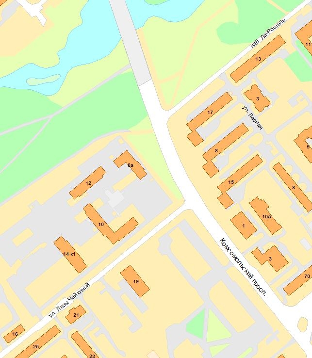 В начале Комсомольского проспекта новые желтые дома около военной части, в первом желтом доме по Комсомольскому проспекту Социальная Аптека, сразу же во двор после социальной аптеки, перед вами желтая девятиэтажка Л.Чайкиной,12, обходим дом со стороны речки, подъезд № 2, около подъезда голубятня.